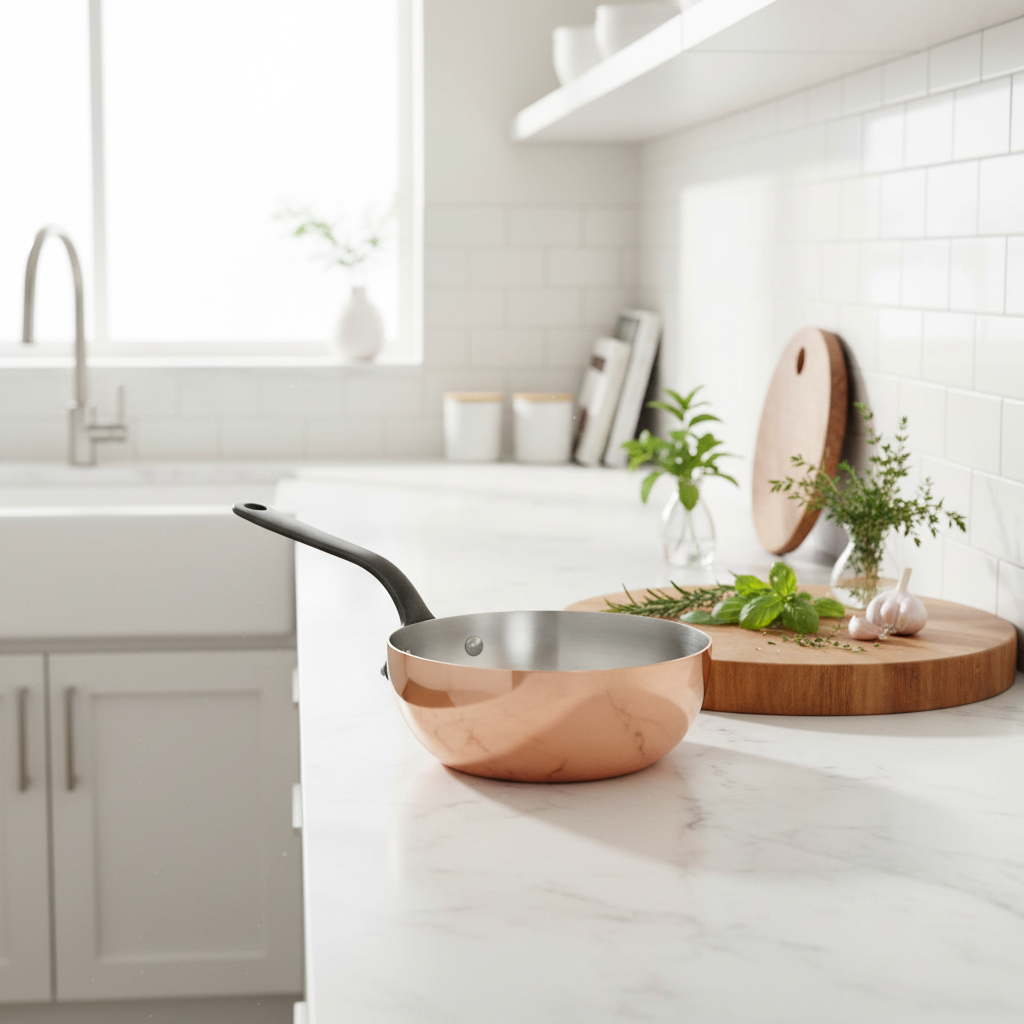 Cleaning the inside of unlined copper is essential. To remove any verdigris on an unlined pan, use a vinegar-salt solution or rub it with lemon sprinkled with salt.