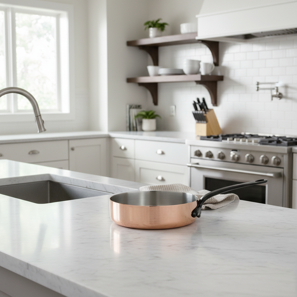 Cleaning the inside of unlined copper is essential. To remove any verdigris on an unlined pan, use a vinegar-salt solution or rub it with lemon sprinkled with salt.