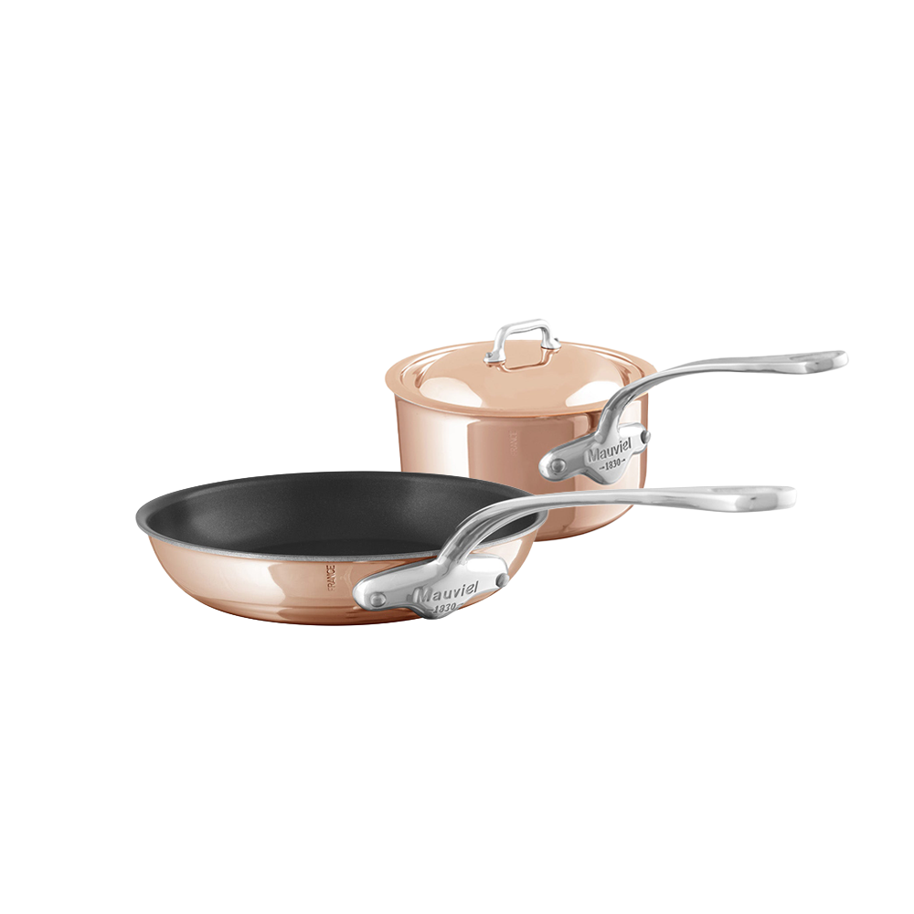 Mauviel M'Heritage M'6 S Induction Copper Fry Pan 7.9-Inch and Sauce Pan 0.9-Qt With Cast Stainless Steel Handles