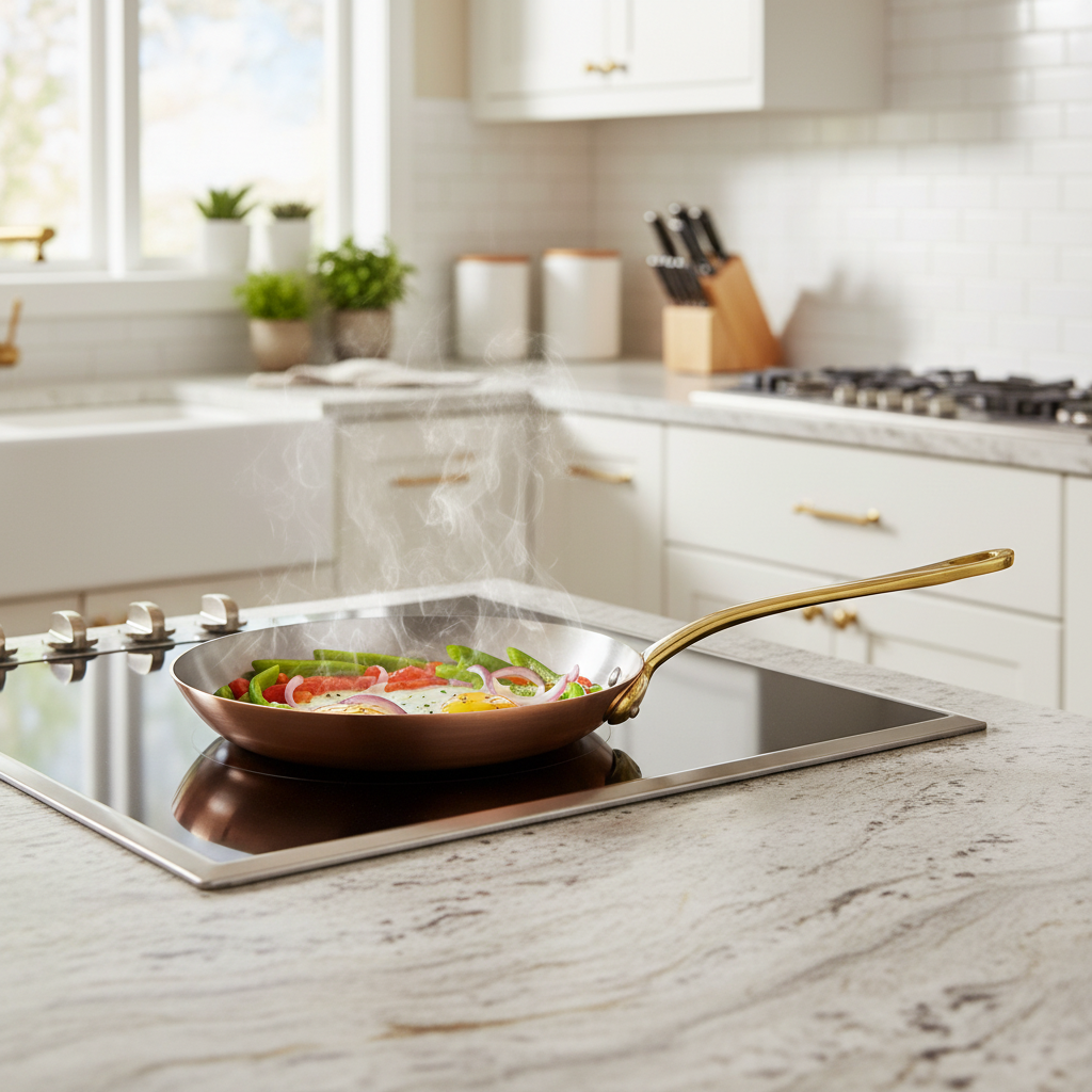 Interior copper stainless steel bi-laminated.