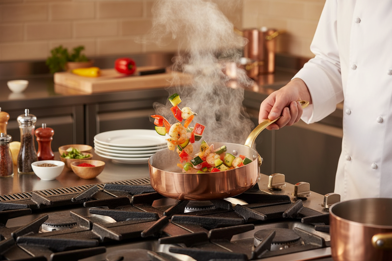- Copper exterior offers superior control, heats evenly and much faster than other metals; stainless steel interior preserves the taste and nutritional qualities of foods and is easy to clean.