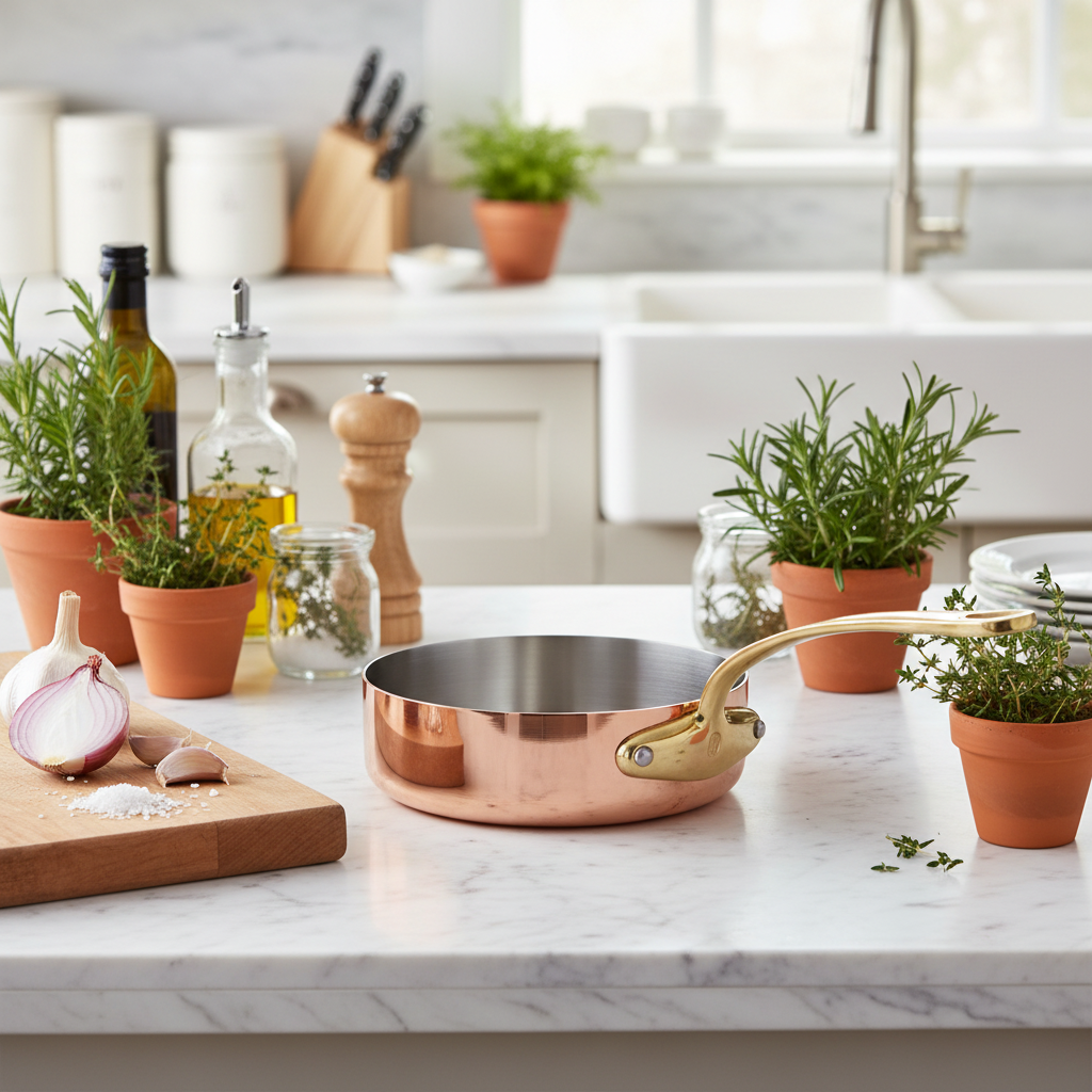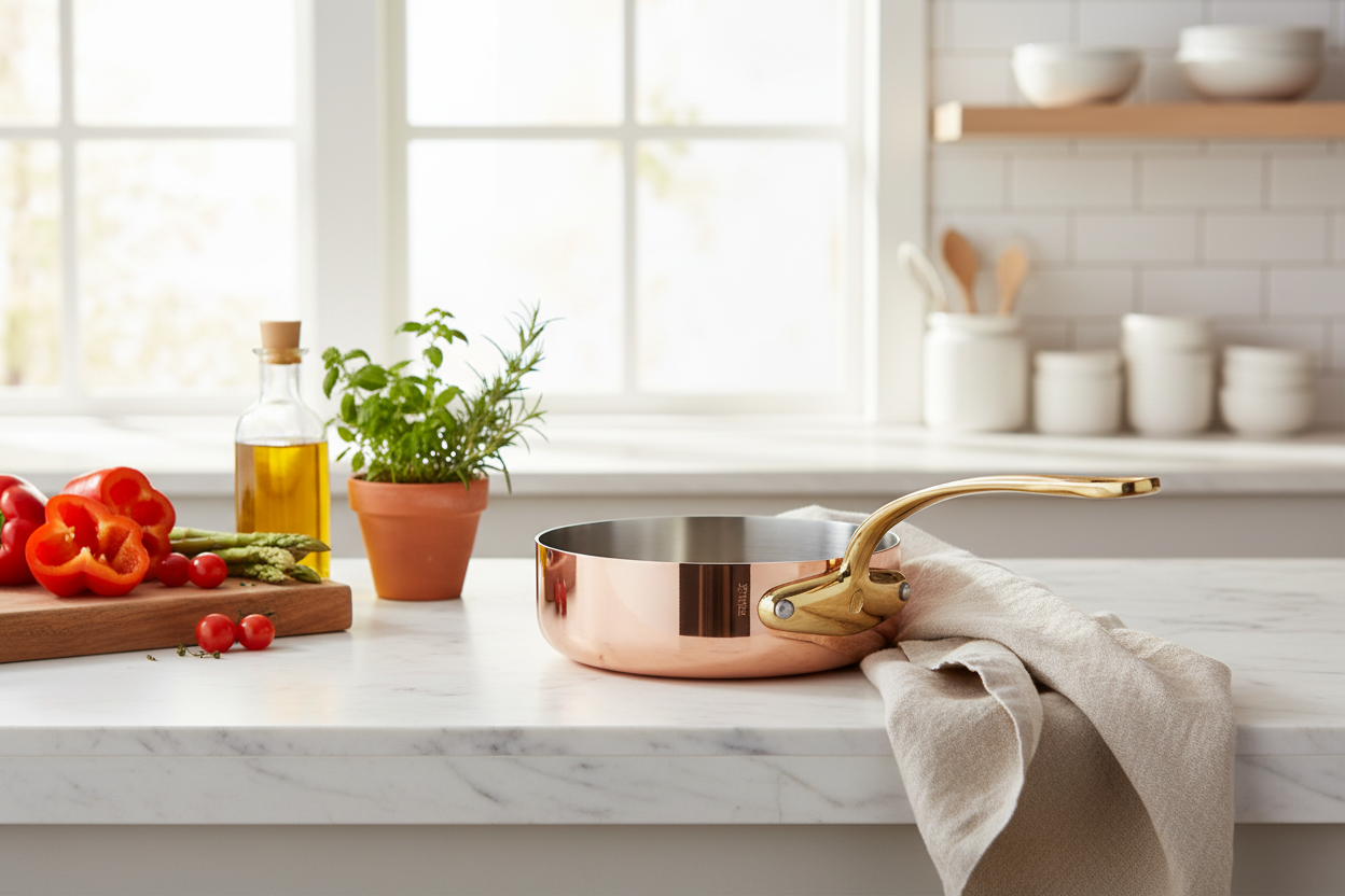 Mauviel M'Heritage M'200 B Saute Pan With Brass Handle, 3.3-Qt