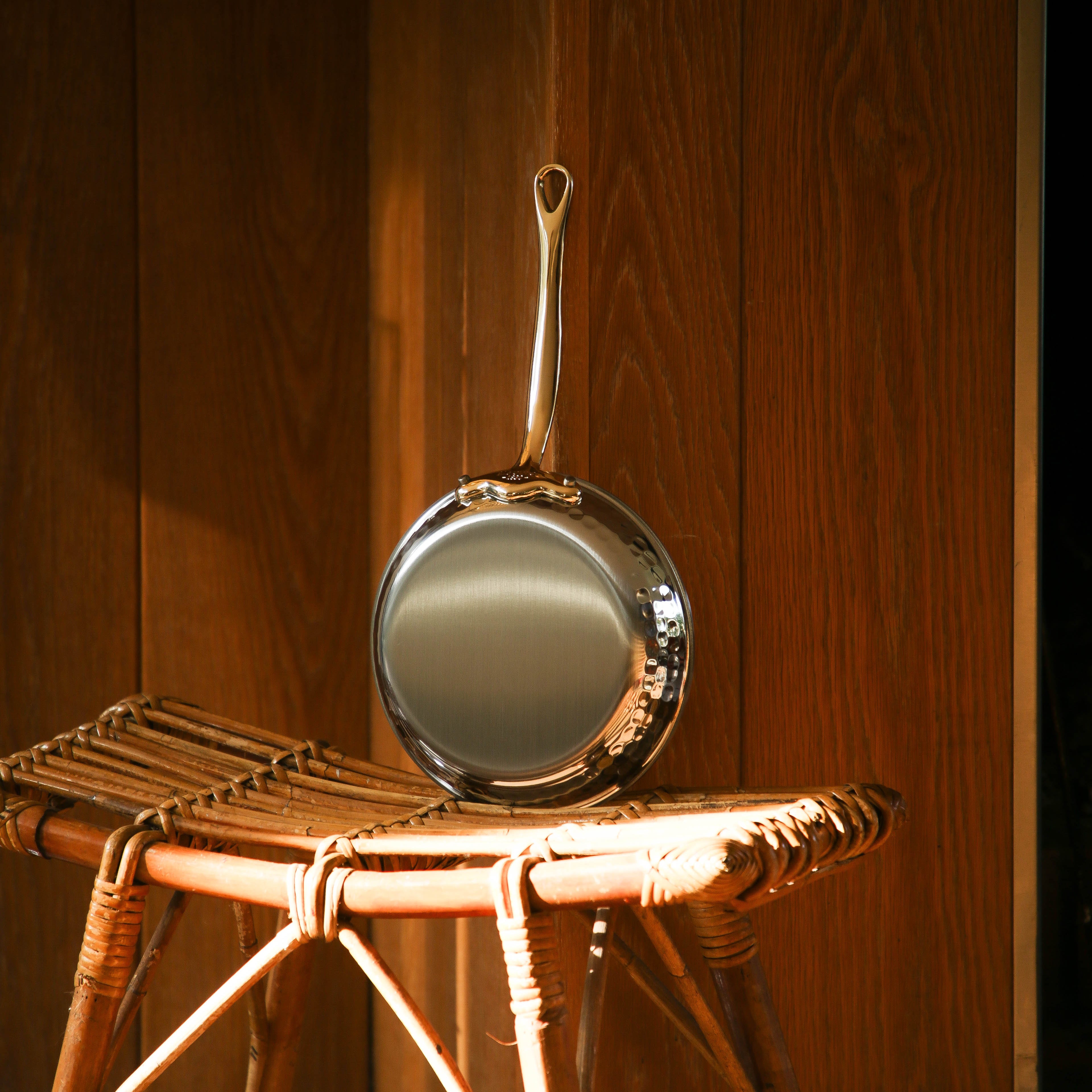 Mauviel M'ELITE B Hammered 5-Ply Frying Pan With Brass Handle